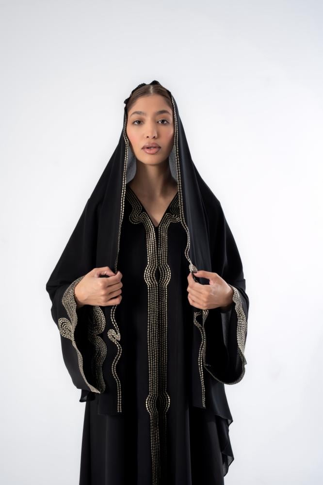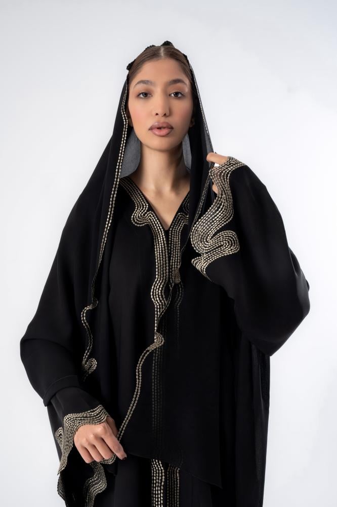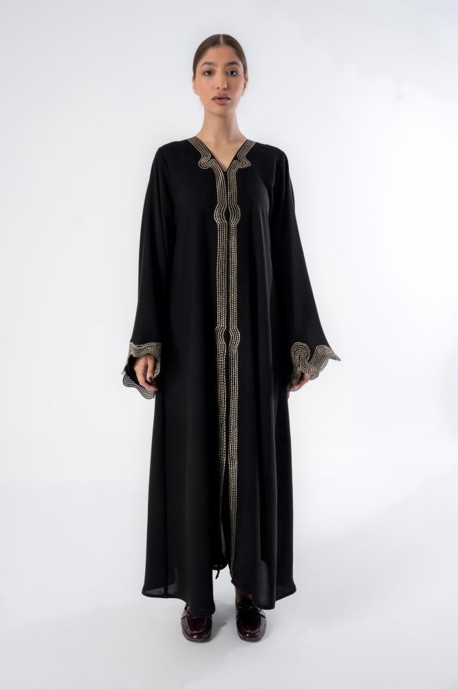 • عباية اكمام كلوش بأكمام مطرزة تعطي لمسة فنية راقية