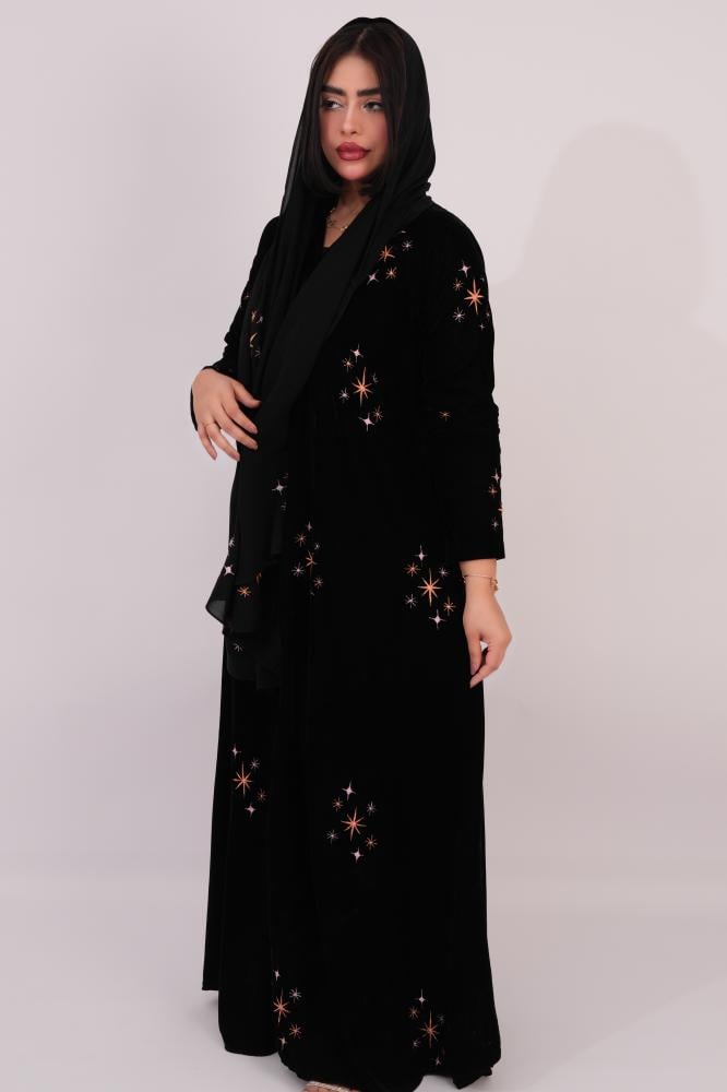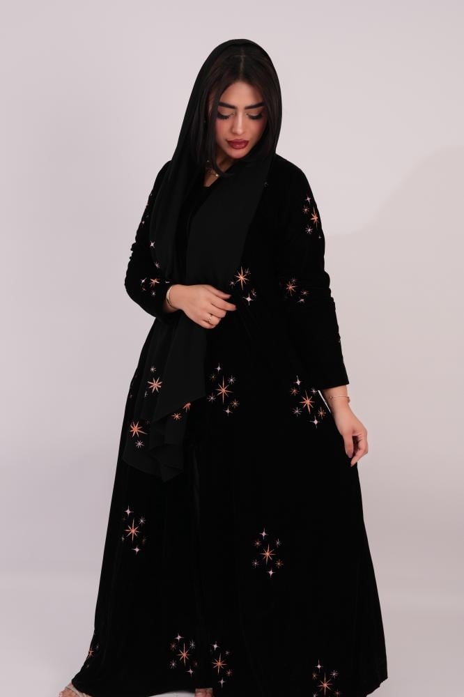 - نوع القماش: مخمل أسود فاخر مطرز بعناية فائقة